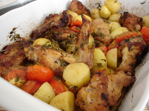 Brush the chicken with the dressing you put aside and add to the roasting tin.Cook for 25-30min or until the chicken is cooked.And serve.